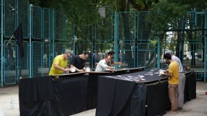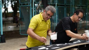 فرهاد عابدی هنرمند برجسته محمودآبادی با اشاره به اینکه بیشتر از اشعار محتشم و قدیمی استفاده کردیم، اظهارکرد: پارچه نویسی یک زیبایی خاصی دارد که پس از سال ها فراموش شدن، دوباره در شهر محمودآباد زنده شده و امروزه کارهای چاپی به اندازه تحریر جلوه و زیبایی ندارد. وی با اذعان به اینکه با پیشنهاد شورای اسلامی شهر ، شهرداری و اداره فرهنگ و ارشاد اسلامی محمودآباد به این کارگاه دعوت شدیم، ادامه داد: حس و حال عاشورایی و علاقه به امام حسین (ع) باعث شد تا به صورت دلی این کار را انجام دهیم. عابدی یادآور شد : با همت شهرداری محمودآباد دوباره این سنت قدیمی به دل شهر و شهروندان برگشته و آثاری است که به دلیل پتانسیل های هنری قدیمی نمی شود. این خوشنویس برتر محمودآبادی خاطرنشان کرد : هویت بصری برای ما بسیار مهم است و این جریان هنری قطعا بر جان مردم نفوذ می کند.